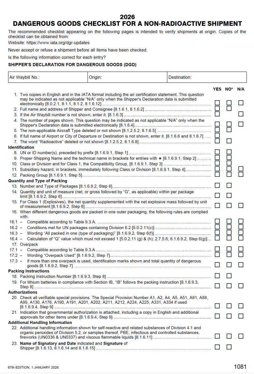 Note: You must refer to the Operator’s Dangerous Goods Manual and/or specific Dangerous Goods documentation for any standard operating procedures (SOPs). It is mandatory for operators to include the transport of dangerous goods, including lithium batteries and cells as cargo, in their safety management system (SMS) and in their specific safety risk assessment on the transport of items in the cargo compartment.